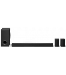 La barra de sonido LG S80TR ofrece una experiencia de cine en casa inmersiva con sus 5.1.3 canales y 580W de potencia. Compatible con Dolby Atmos y DTS:X, incluye un subwoofer y altavoces traseros inalámbricos. La tecnología AI Room Calibration Pro optimiza el sonido para tu sala. Perfecta para un sonido envolvente y de alta calidad sin cables.