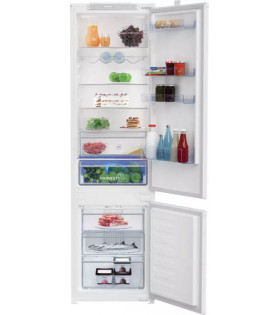 690,00 €El combi Beko BCHA306E4SN es un frigorífico integrable de gran altura (193.5 cm) y 289 litros. Incorpora la tecnología NeoFrost Dual Cooling (Total No Frost con sistemas de frío independientes), previniendo la mezcla de olores y la escarcha. Su característica estrella es HarvestFresh™, una iluminación LED tricolor que simula el ciclo solar para conservar las vitaminas A y C de frutas y verduras. Es muy silencioso (38 dB) y usa un eficiente Compresor ProSmart™ Inverter.