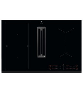 1.410,00 €Placa de inducción Electrolux KCC83443CZ (80 cm) con extractor integrado (ComboHob). Ofrece 4 zonas con Función Bridge (combinable) y Booster. Destaca por su tecnología Hob2Hood (control automático de extracción), motor eficiente (A+) y un filtro 2 en 1 de fácil limpieza. 7.350 W de potencia.