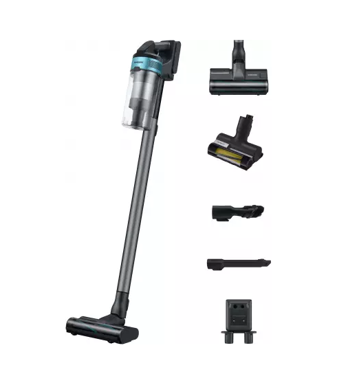Aspirador Escoba Samsung Jet 75 Pet (VS20B75BGR1). Potencia de succión de hasta 200 AW con Motor Digital Inverter (550W). Sistema Jet Cyclone y filtración multicapa que atrapa el 99,999% del polvo. Batería de hasta 60 min. Ligero (2,6 kg) e ideal para pelos de mascota (incluye cepillo Pet Tool). Depósito lavable de 0,8L.