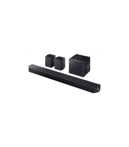 La barra de sonido Samsung HW-Q995F ofrece un sonido envolvente con un sistema de 11.1.4 canales que incluye altavoces traseros y subwoofer inalámbricos. Cuenta con Dolby Atmos inalámbrico y DTS:X, creando una experiencia de cine en casa. Su tecnología Q-Symphony sincroniza el audio con tu TV Samsung, mientras que SpaceFit Sound Pro calibra el sonido según tu espacio.