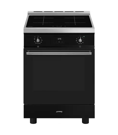 Cocina Smeg Clásica C6IPBLT2 de 60x60 cm en elegante color negro. Cuenta con placa de inducción de 4 zonas y horno eléctrico termo-ventilado de 70 L (o 79 L, verifica el dato) con potente limpieza pirolítica. Clase energética A. Ofrece cocción precisa, rápida y eficiente, control táctil, y seguridad infantil, combinando la estética clásica con la máxima funcionalidad.