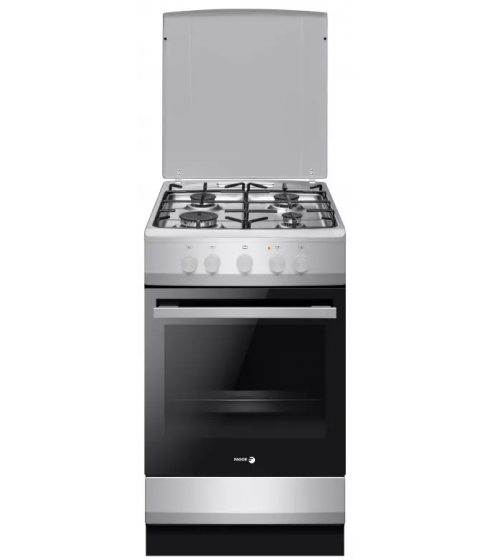 Cocina Fagor FACG202S de Gas, de diseño Gris/Negro y 50 cm de ancho. Placa con 4 quemadores de gas equipados con seguridad de termopar. Horno de gas con 74 litros de capacidad y sistema de limpieza por Catálisis. Ofrece cocción por convección natural y tapa esmaltada. Eficiencia energética Clase A. Potencia, seguridad y capacidad en un tamaño compacto.