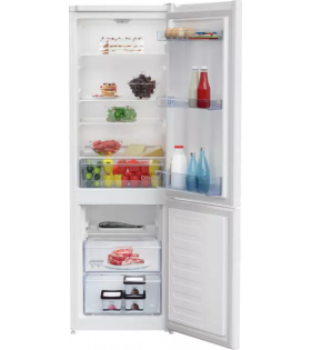 El Beko RCSA270K40WN es un frigorífico Combi de libre instalación, compacto (170,8 cm alto x 54 cm ancho) y con 262 L de capacidad total. Utiliza tecnología MinFrost® en el congelador, que reduce la formación de hielo a la mitad. El frigorífico tiene descongelación automática y el conjunto es de eficiencia energética Clase E. Es silencioso (38 dBA), con iluminación LED y puerta reversible, ideal para espacios reducidos.