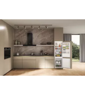 El Whirlpool WHC18 T311 (Serie WHC18) es un frigorífico combi integrable de 177 cm de altura con tecnología 6th Sense, que monitoriza la temperatura para restaurarla rápidamente tras abrir la puerta. Cuenta con sistema Total No Frost para evitar la escarcha y el cajón Fresh Box+ con control de humedad para frutas y verduras. Su diseño eficiente maximiza el espacio interior y garantiza un funcionamiento silencioso, integrándose perfectamente tras el mueble de cocina.