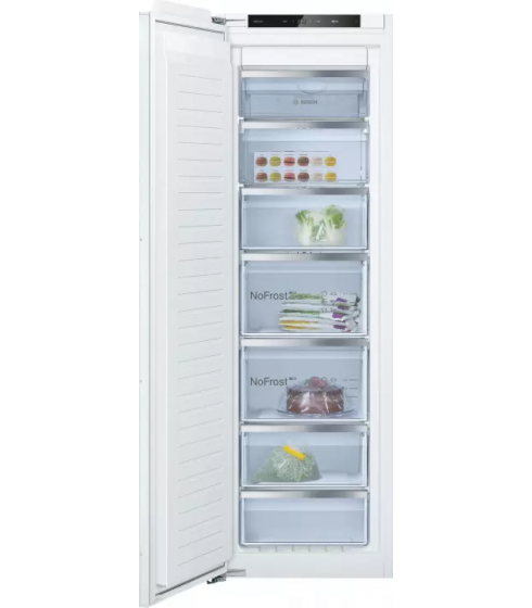 Optimiza tu cocina con el Bosch GIN81VEE0, el congelador integrable de la Serie 6 diseñado para un acabado perfecto gracias a su sistema de instalación de puerta fija. Disfruta de la comodidad de la tecnología NoFrost y la amplitud del cajón BigBox. Gracias a sus sensores FreshSense, mantiene una temperatura constante y precisa. Es la solución ideal para quienes buscan máxima integración, durabilidad y eficiencia alemana en un solo electrodoméstico.