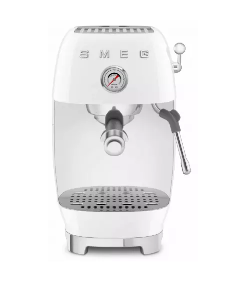 La cafetera espresso Smeg ECF03WHEU, en un elegante color blanco, combina el icónico diseño de los años 50 con tecnología de alto rendimiento. Con 15 bares de presión y sistema Thermoblock, prepara cafés, cappuccinos y lattes perfectos. Es compatible con café molido y monodosis ESE, ideal para cualquier cocina.