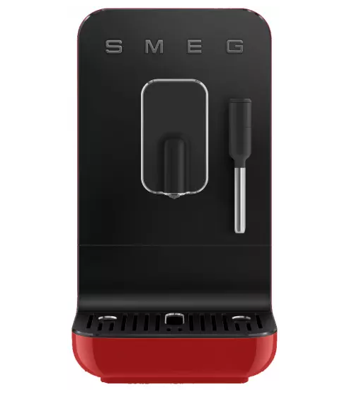 Cafetera Smeg BCC12917EU Superautomática (Edición Especial Porsche). Diseño exclusivo "917 Salzburg Red". Prepara hasta 8 funciones de bebida con molinillo integrado y 19 bares de presión. Permite usar grano o café premolido. Incorpora boquilla de vapor para espumar leche. Elegante, con cuerpo de plástico brillante y panel frontal de aluminio negro anodizado.