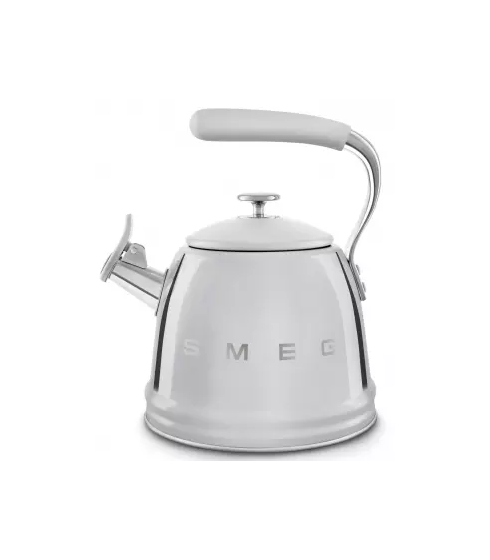 El Hervidor Silbante Smeg WKF01SS en acabado Acero Inoxidable Pulido ofrece la estética 50's Style con un toque moderno y minimalista. Fabricado completamente en acero inoxidable de alta calidad, es resistente y duradero, con una capacidad de 2,3 litros. Su diseño es compatible con todas las fuentes de calor, incluyendo las placas de inducción, garantizando la máxima versatilidad. El clásico silbato emite el aviso al hervir, y su asa ergonómica con revestimiento de silicona asegura un agarre cómodo y seguro. Una pieza funcional y atemporal para cualquier cocina.