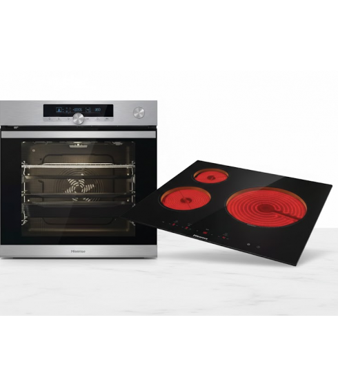 Renueva tu cocina con el conjunto Hisense BSA66334PX + E6332BS. Este pack incluye un horno multifunción de 77 litros con limpieza Steam Clean y una placa de inducción de alta eficiencia con función Boost. El horno destaca por su cavidad redondeada tipo "Even Bake" para cocciones uniformes, mientras que la placa ofrece un control táctil intuitivo y seguridad infantil. Diseño integrado en inox y cristal para un rendimiento profesional.