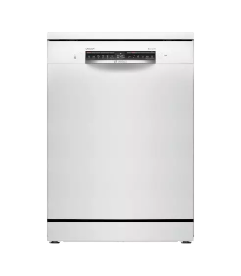 Lavavajillas Bosch Serie 4 (SLS4ELW06F/SMS4EMW06E) de 60 cm y 13 servicios. Clase energética B, súper eficiente (9L de agua/ciclo) y silencioso (42 dB) con motor EcoSilence. Secado optimizado EfficientDry (apertura automática) y cestas VarioFlex/RackMatic. Control total vía Home Connect (Wi-Fi), 6 programas y protección AquaStop. Limpieza potente y flexible
