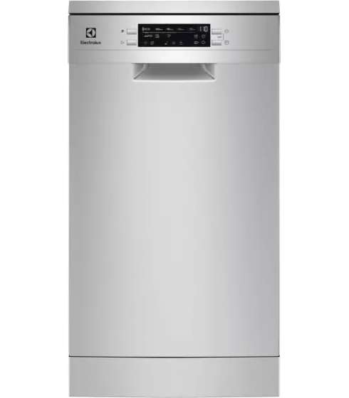 Electrolux ESA63200SX: Lavavajillas de libre instalación (45 cm), ideal para cocinas compactas. Ofrece capacidad para 10 servicios con una tercera bandeja MaxiFlex para cubiertos. Destaca por la tecnología AirDry (apertura automática de puerta al finalizar) para un secado eficiente y el Motor Inverter silencioso (46 dB). Incluye opciones como ExtraHygiene y XtraPower. Consumo en programa Eco: 9.9 L de agua. Acabado en acero inoxidable antihuellas.