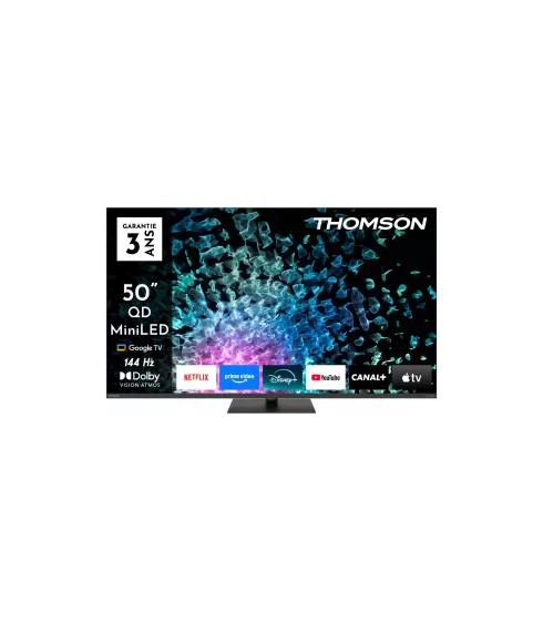 La Smart TV Thomson 50MG7C15 ofrece una experiencia cinematográfica superior gracias a su tecnología QD-Mini LED de 50 pulgadas. Disfruta de un contraste infinito, negros profundos y colores vibrantes con la precisión de los Puntos Cuánticos. Equipada con Google TV, resolución 4K HDR y Chromecast integrado, es la combinación perfecta entre gran formato y calidad de imagen avanzada. Diseño elegante sin marcos para una inmersión total en tu hogar