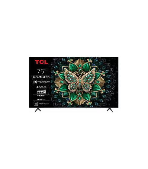 La TCL 75C6K es una TV 4K de 75 pulgadas con tecnología QD-Mini LED y panel VA, que ofrece negros profundos y contraste de 7000:1. Ideal para gamers gracias a su tasa de refresco nativa de 144Hz, VRR, FreeSync Premium Pro y 2 puertos HDMI 2.1. Incluye Google TV, sonido Onkyo 2.1 con Dolby Atmos y un procesador AiPQ Pro.