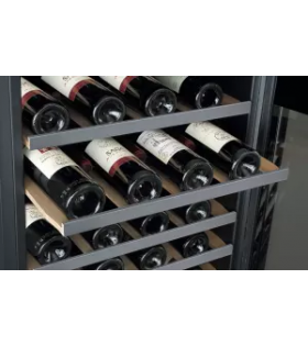 Vinoteca Le Chai LBN490F de libre instalación, con 2 zonas de temperatura (multi-temperaturas) y capacidad para 49 botellas. Incluye 5 estantes de madera deslizantes y puerta de doble cristal con filtro anti-UV. Ofrece refrigeración por compresor, es silenciosa (38 dB) y cuenta con display digital para un control preciso de la temperatura. Perfecta para servicio y guarda de tus vinos.