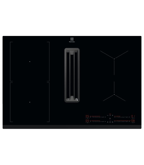 Placa de inducción Electrolux KCC83443CZ (80 cm) con extractor integrado (ComboHob). Ofrece 4 zonas con Función Bridge (combinable) y Booster. Destaca por su tecnología Hob2Hood (control automático de extracción), motor eficiente (A+) y un filtro 2 en 1 de fácil limpieza. 7.350 W de potencia.
