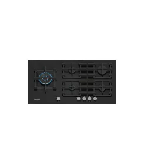 La Siemens EP9A6MI40 (iQ500) es una Placa de Gas de 90 cm con 5 quemadores, diseñada con una elegante superficie de Cristal Templado Negro.
