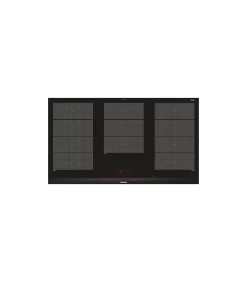 La Siemens EX975LXC1E iQ700 es una placa de inducción de 90 cm con 5 zonas y 3 áreas FlexInducción que se adaptan automáticamente a recipientes grandes (hasta 40 cm). Cuenta con Control lightSlider (táctil deslizante) y fryingSensor Plus (control de temperatura del aceite en 5 niveles). Ofrece funciones como powerMove, powerBoost y 17 niveles de potencia. Su diseño es topClass con perfiles laterales de acero inoxidable. Potencia total: 11.100 W.