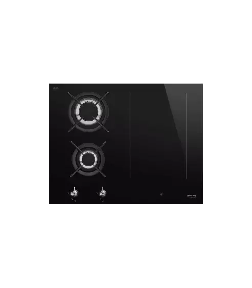 La Smeg PM3643D es una Placa de Cocción Mixta de 65 cm (2 zonas Gas + 2 zonas Inducción) en elegante Cristal Negro de la Estética Clásica.