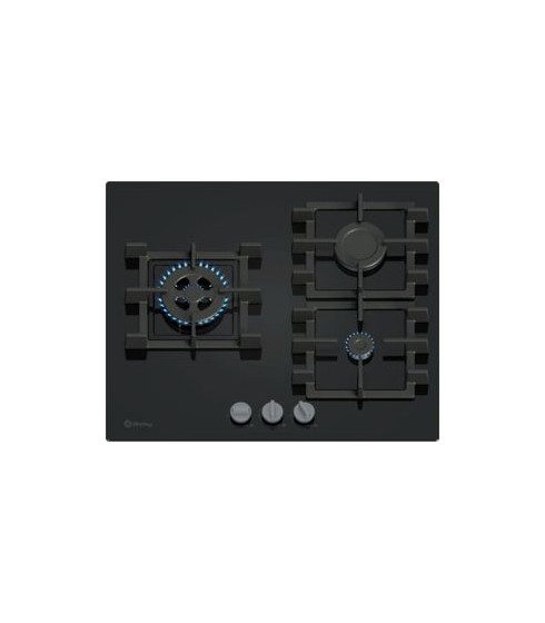 Placa de gas Balay 3ETG563QB de 60 cm con elegante diseño en cristal templado negro. Cuenta con 3 quemadores, incluyendo un potente quemador Wok de doble llama (3.3 kW) para cocciones rápidas. Dispone de Autoencendido integrado en los mandos ergonómicos y parrillas individuales de hierro fundido (aptas para lavavajillas). La seguridad está garantizada con el sistema Gas Stop, que corta el suministro si detecta ausencia de llama. Combina la estética del cristal con la eficiencia del gas.
